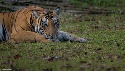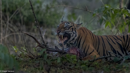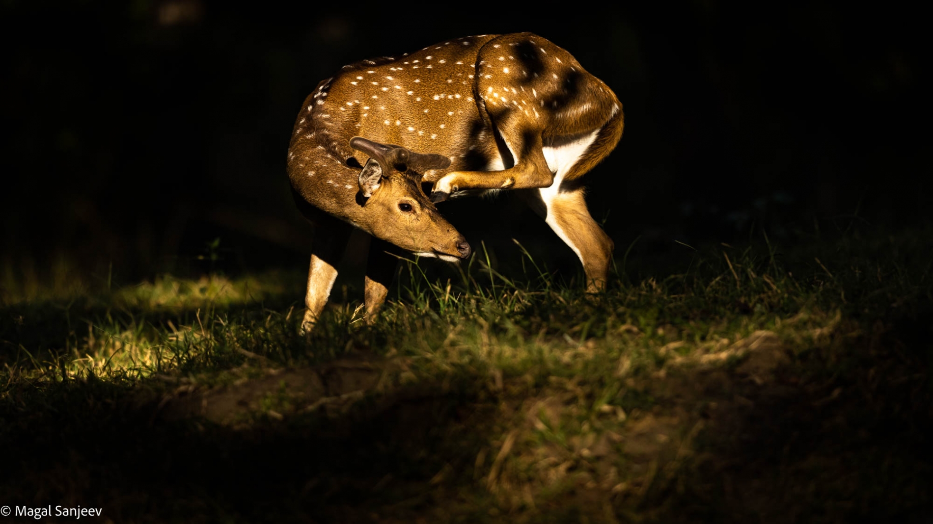 After walking alongside the bushes, he got into a clearing; Guess he was in a mood to cross the road. One such moment when he contemplated his next step Canon R5 - ISO 3200, f4.5, 1/100