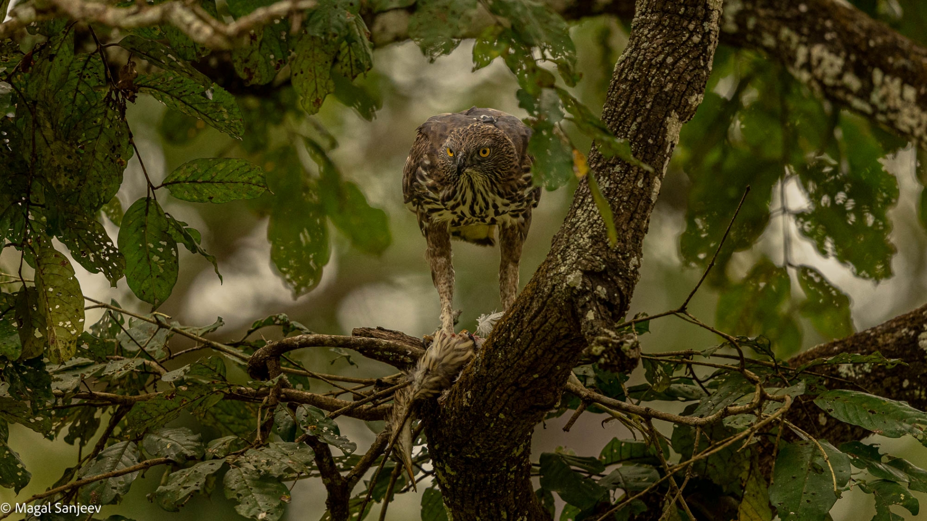 Crested Hawk Eagle with Pond Heron Kill