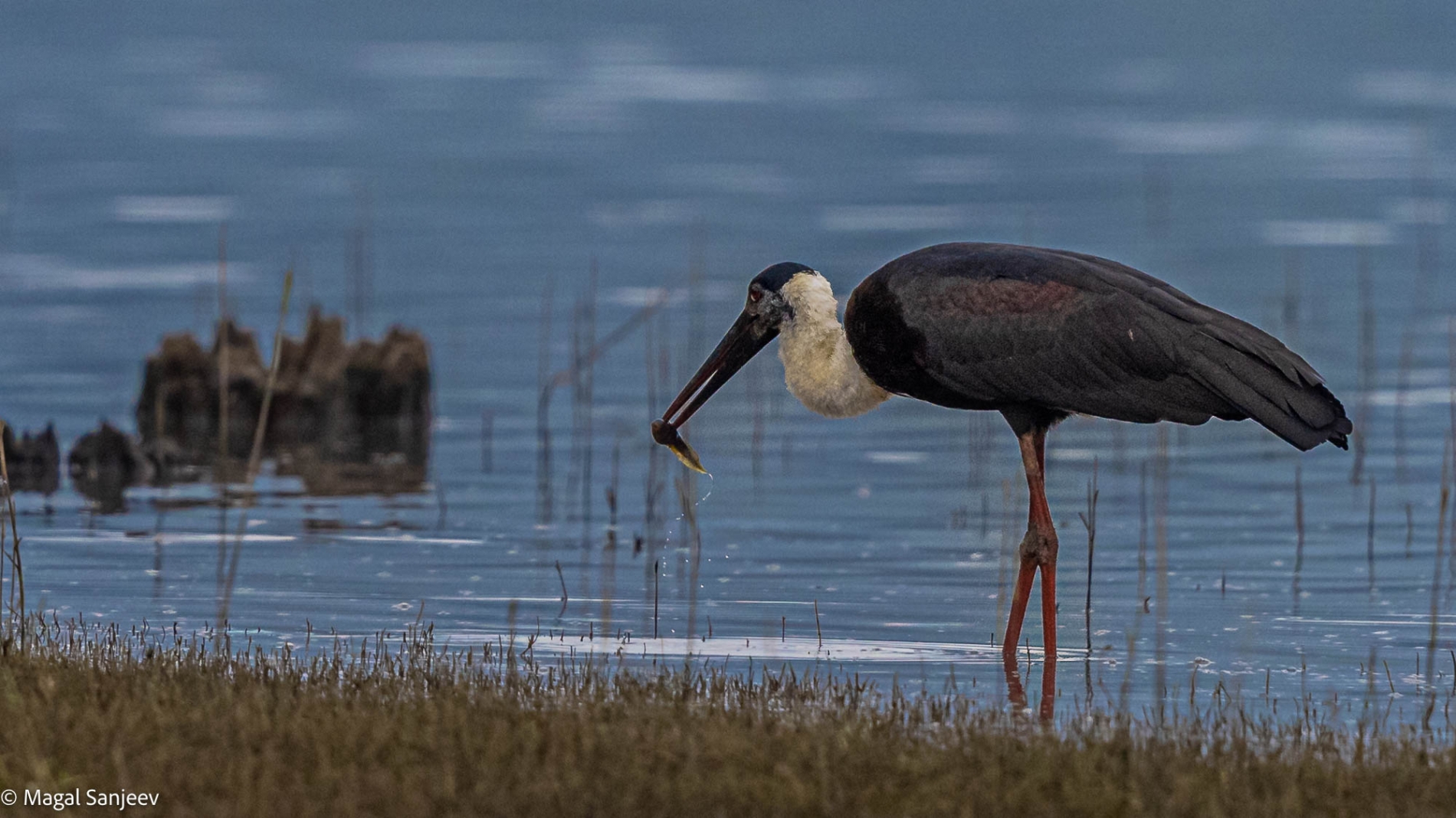 A rare occasion and sighting - A wooly stork with a kill. Canon EOSR5, ISO 800, 1/6400, f4