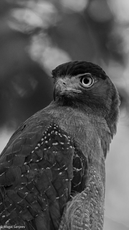 Checking the tones of this Serpent Eagle in monochrome. 50% Cropped to check the impact and sharpness factor. Canon R5 - ISO 2000, f4, 1/000