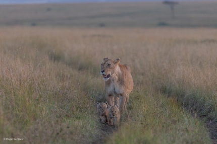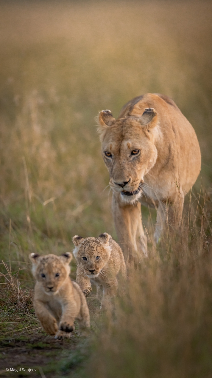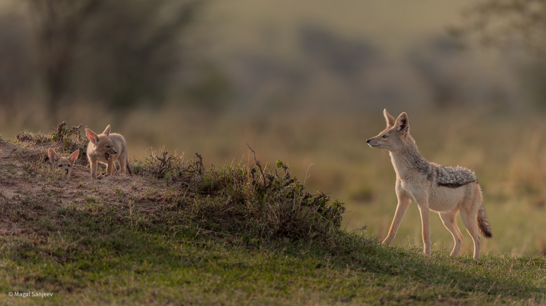 Even as the mother scans the plains and is on the lookout, her curious and playful sons sneak through.