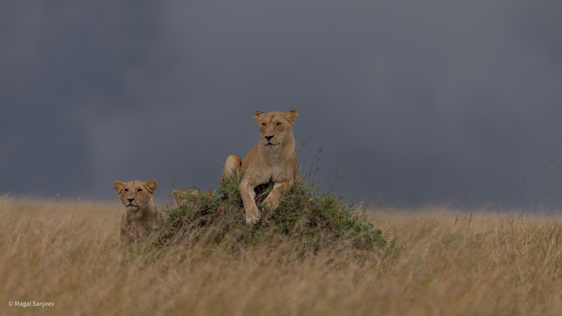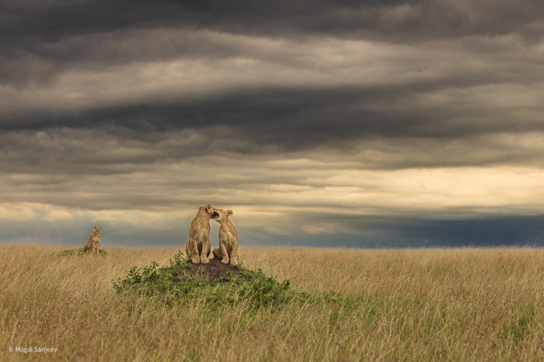 These adolescent cubs, have some brotherly moment even as heavy storm lurk above them. And a sub-adult cub looks on