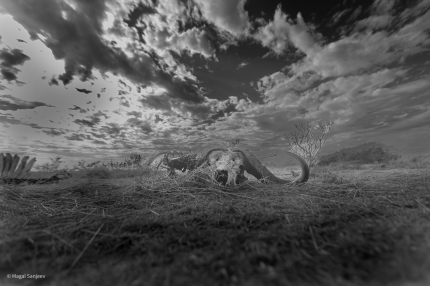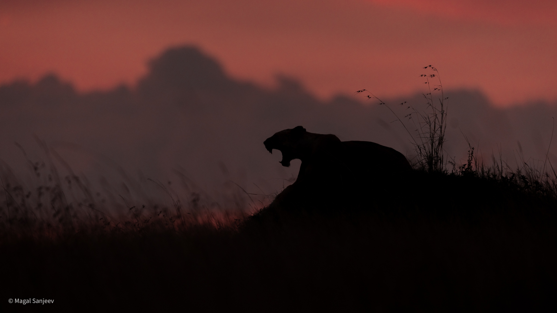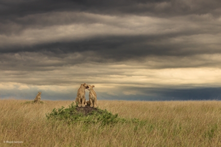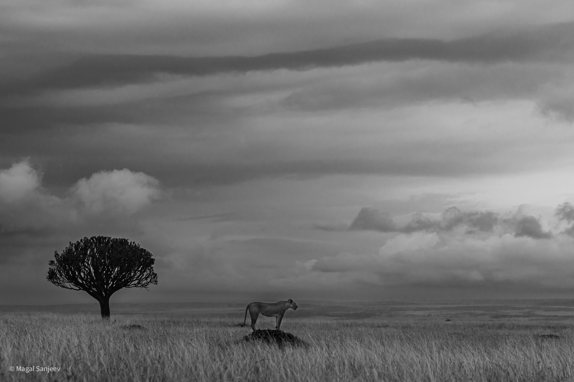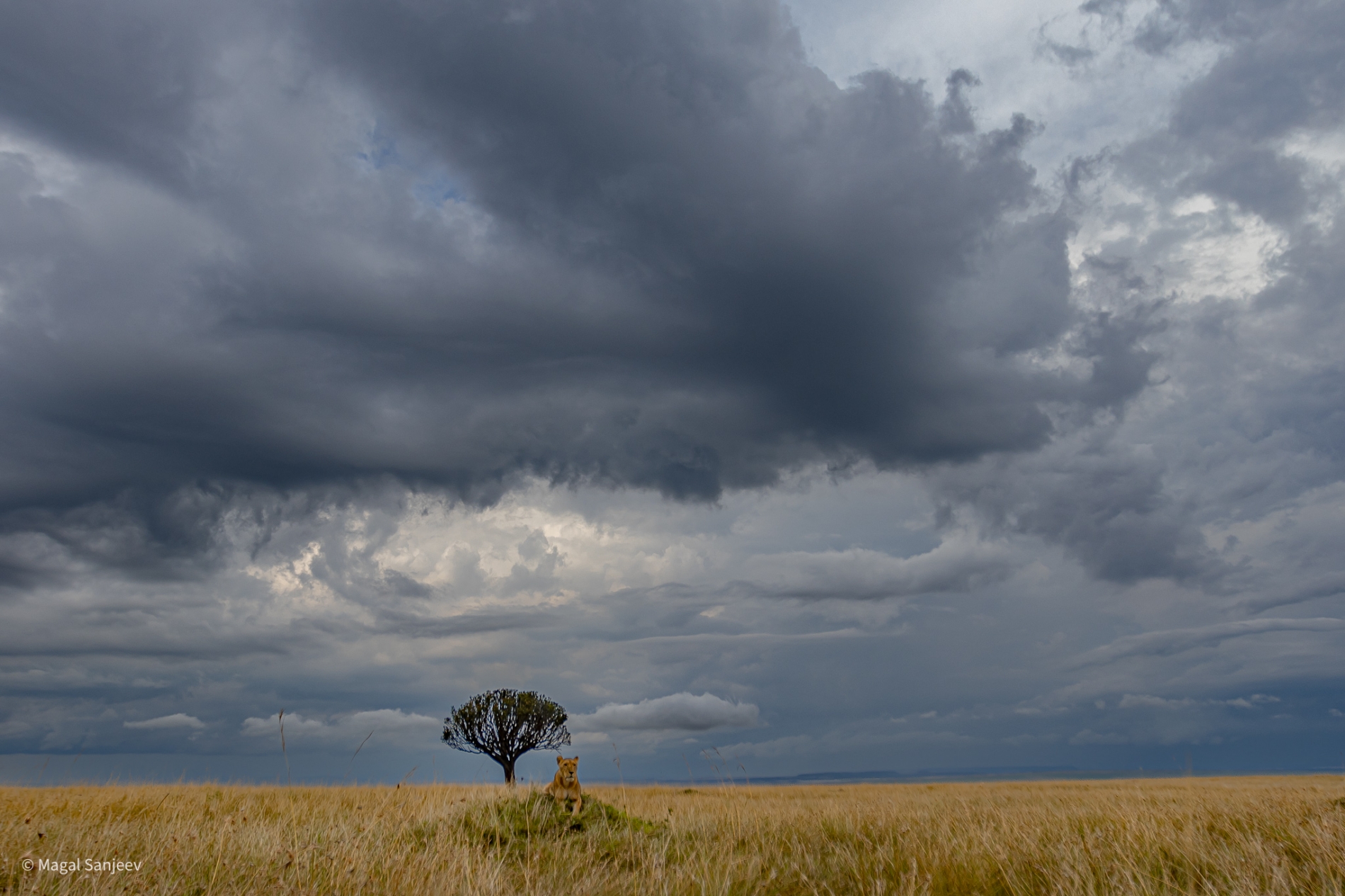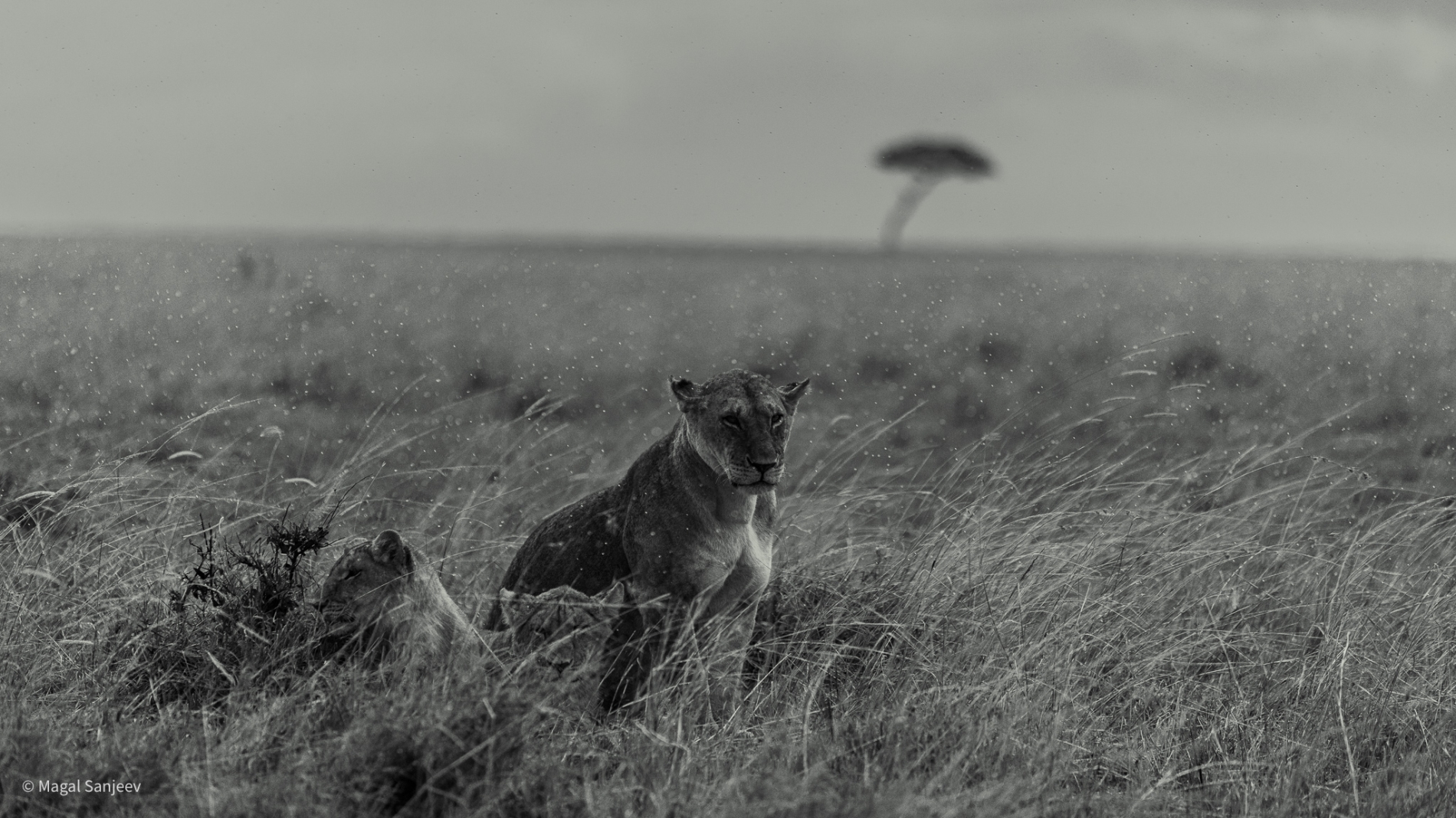 A moody and sombre setting. With heavy rains in the background, this Lioness, partially seen and completely hidden, wonders about her next move