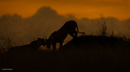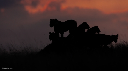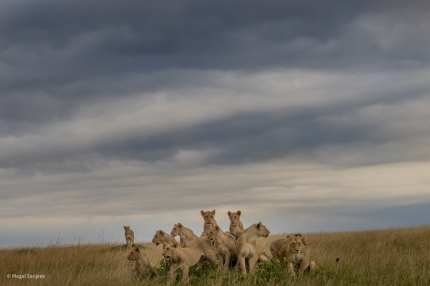 The entire topi pride led by the Pride Female, get together, before their night patrolling!