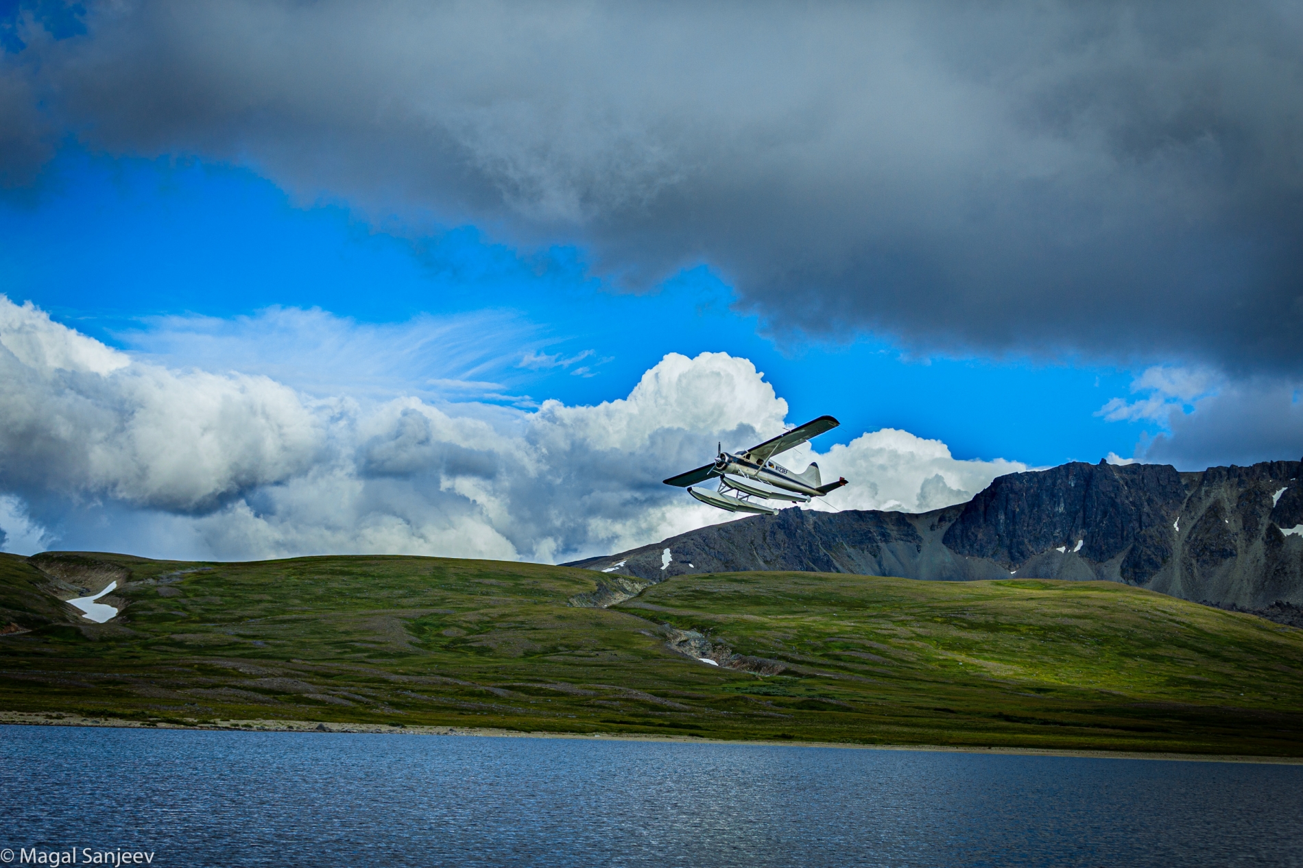 A sea plane flies across the mesmerising and heavenly alaskan mountains. Alaska 2018 Edition. Canon Gear