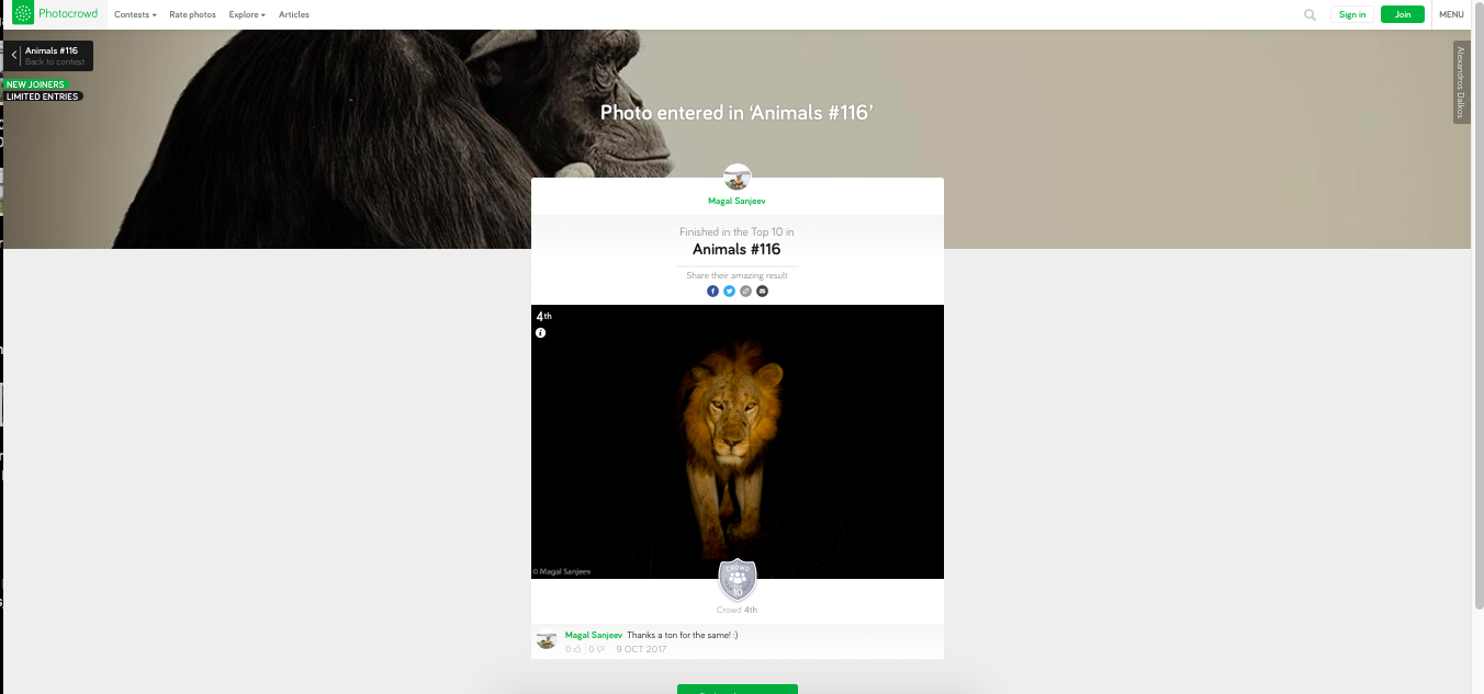My Image of Lion "Walking in the dead of night" featured in Photo Crowd - Top 10. Image made in Zambia 2017 Edition. Canon Gear