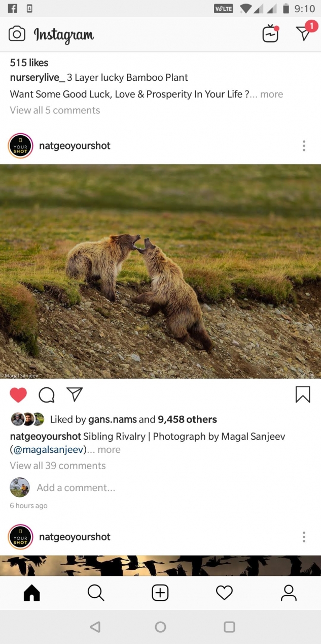 Natgeo featured my image titled "Sibling Rivalry" made in Alaska 2018 Edition. Canon Gear